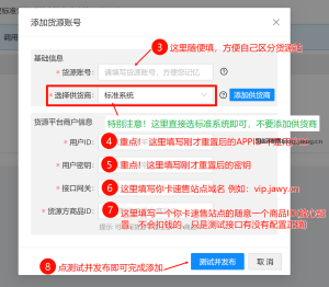 ①货源账号:随便填写,主要是方便自己区分这个接口是哪个货源站哪个账号用,对接中不起实际作用